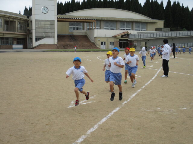 10月20日(月)、秋の空の下、高学年・中学年の校内持久走記録会を行いました。