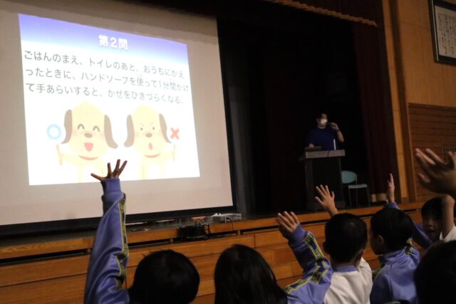 質問タイムには子供たちから「新型コロナウイルスに感染すると治るまでにどのくらいの時間がかかりますか?」など、たくさんの質問や感想が出され、積極的に学ぶ機会となりました。