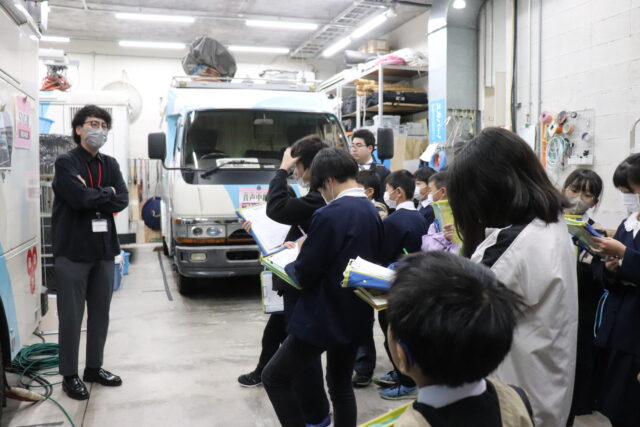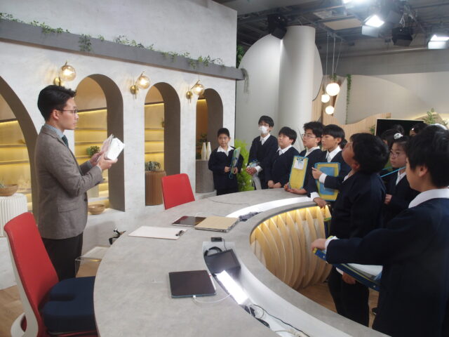 続いて訪れたBBT放送局では、スタジオやニュースづくりの現場を間近で見学しました。実際の機材を見たり、ニュース番組作りの裏側について説明を聞いたりして、番組作りに関わる人たちの仕事やその人たちの工夫や努力について知りました。
