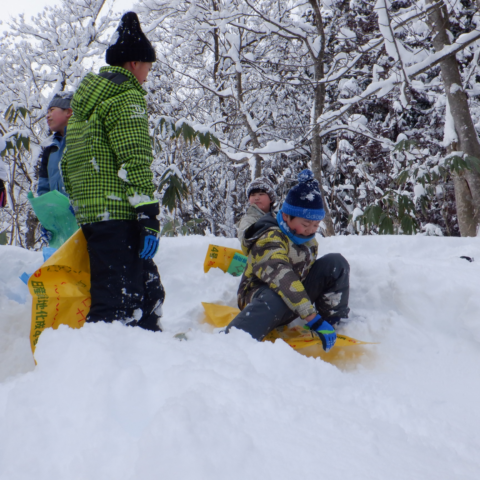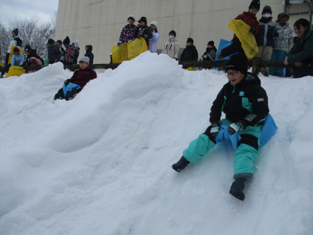 6年生は午前に「しりすべり」、午後は「雪像・雪遊び」を体験しました。