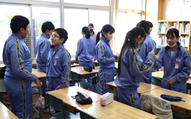 あたたかな人間関係をつくるスキルを身に付けることを目指した「きらめきタイム」で、今回は「ありがとうジャンケン」に取り組みました。