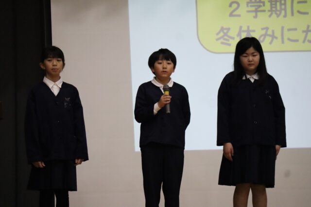 各学級の代表児童が、2学期にがんばったことを発表しました。