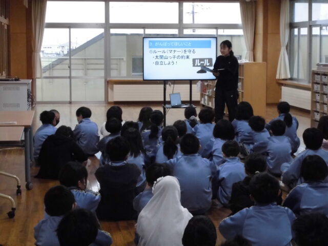 集会では、1年生による元気いっぱいのダンス、4年生による6年間の思い出を振り返る劇、3年生からの心のこもったプレゼントが披露されました。