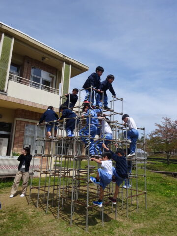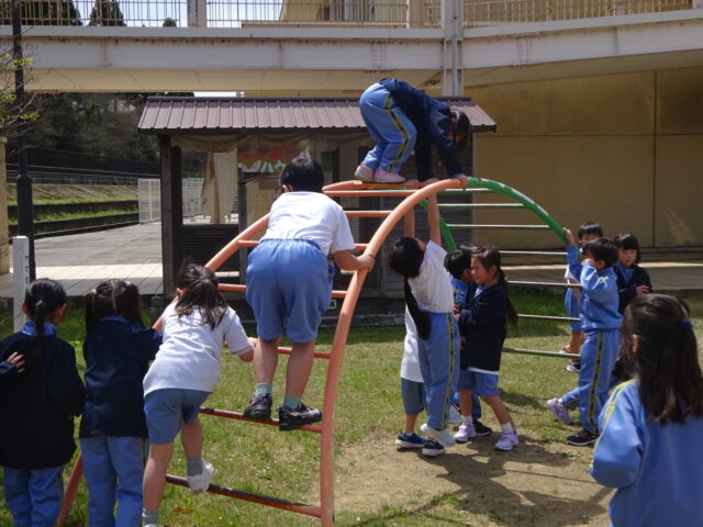 探険のあとは、ジャングルジムやすべり台等の遊具で遊びました。