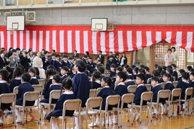 1年生の子供たちは温かい拍手で迎えられ、にこやかな表情からは明日から始まる学校生活への期待が感じられました。担任の先生から名前を呼ばれると、元気いっぱい「はいっ!」と返事をしていました。
